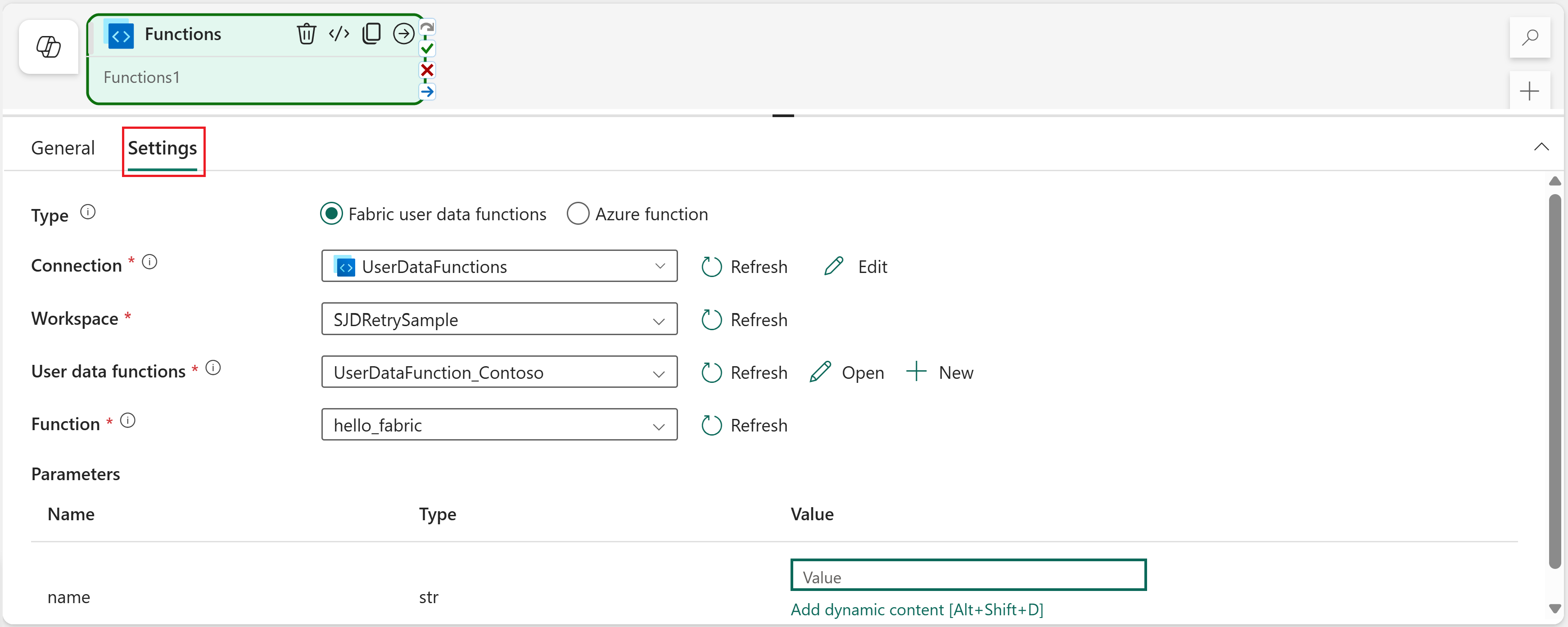 Kør dine brugerdefinerede Python-funktioner som en del af automatiserede dataworkflows ved at tilføje en brugerdatafunktionsaktivitet til en Fabric-pipeline. Denne integration gør det muligt at centralisere forretningslogik i funktioner og kalde dem under planlagte ETL-processer, hvilket eliminerer behovet for at duplikere kode på tværs af notesbøger og scripts.