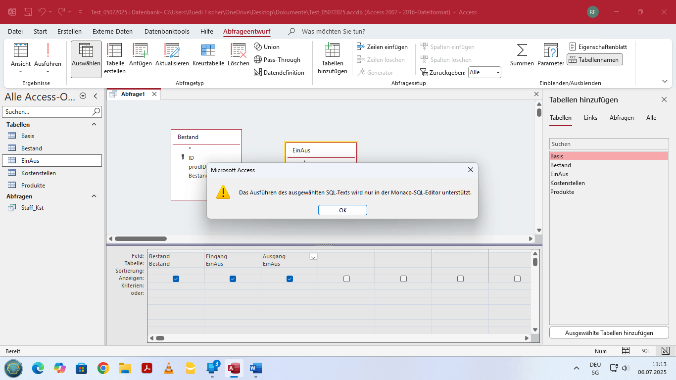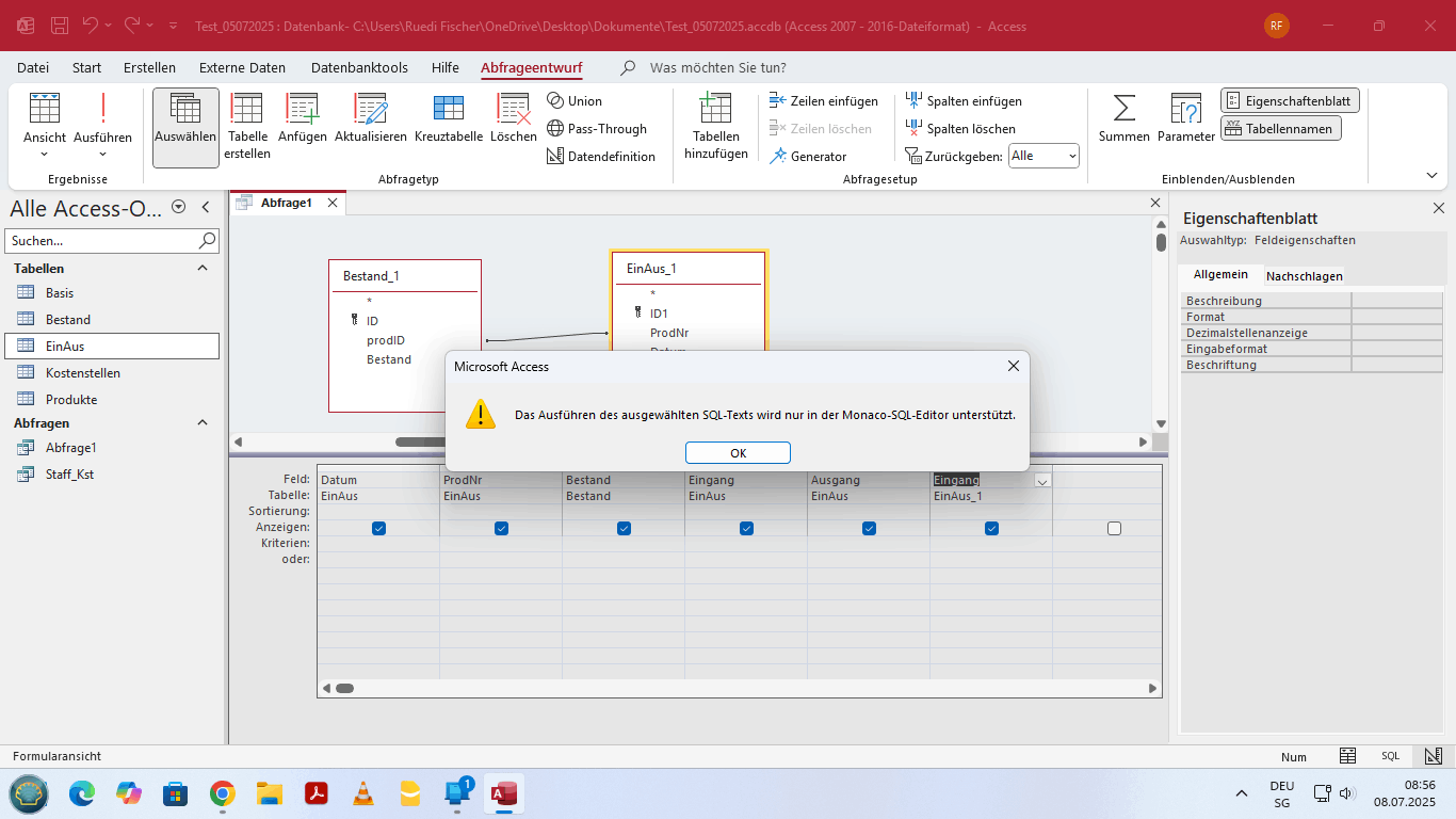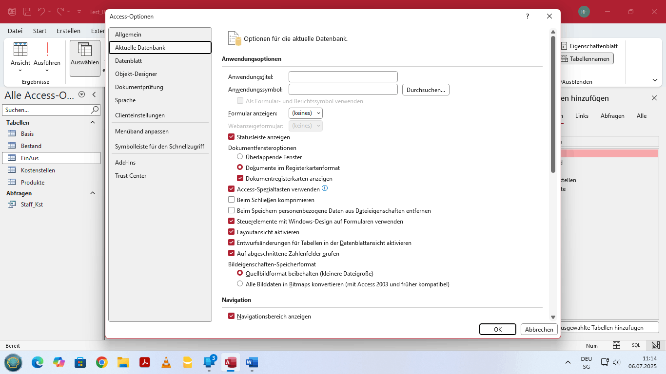 - Können Sie versuchen, eine neue Access-Datei zu erstellen und zu testen, ob das Problem dort weiterhin besteht?