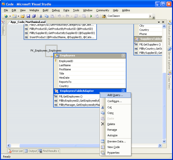 Schritt 1: Hinzufügen einer Methode zuEmployeesTableAdapter