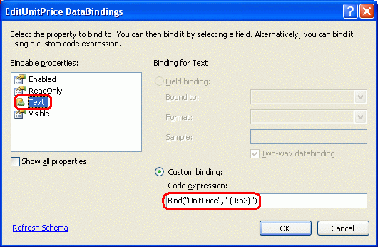 Text='<%# Bind("UnitPrice", "{0:c}") %>'>