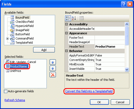 Schritt 2: Konvertieren von BoundFields in TemplateFields