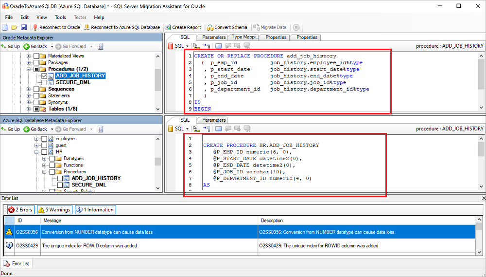 Vergleichen Sie den konvertierten Transact-SQL-Text mit den ursprünglichen gespeicherten Prozeduren, und überprüfen Sie die Empfehlungen.