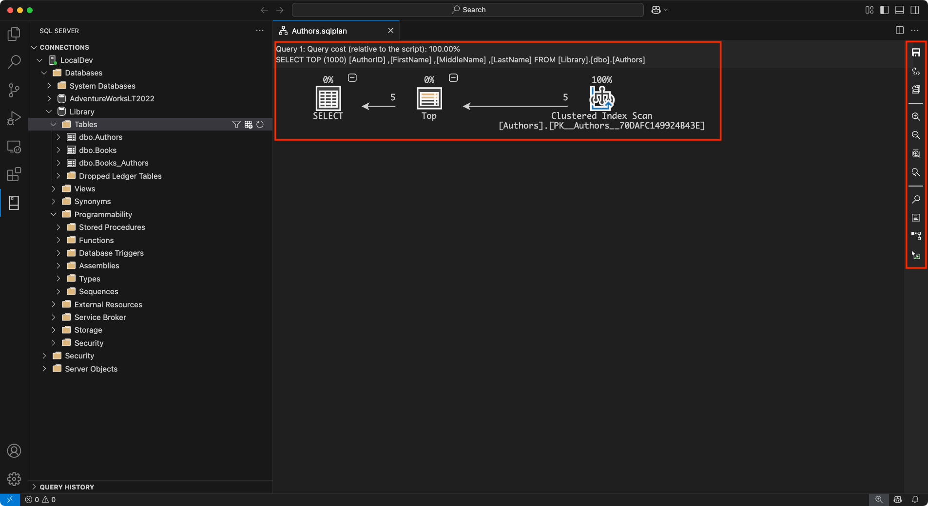 Die MSSQL-Erweiterung bietet integrierte Tools für allgemeine Datenbankvorgänge, darunter: