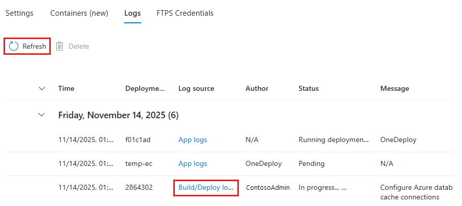 Azure App Service captures all messages logged to the console to assist you in diagnosing issues with your application. For convenience, the AZD template already enabled logging to the local file system and is shipping the logs to a Log Analytics workspace.