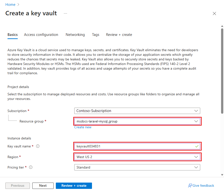 10. Select Review + create, then select Create. Wait for the key vault deployment to finish. You should see Your deployment is complete.