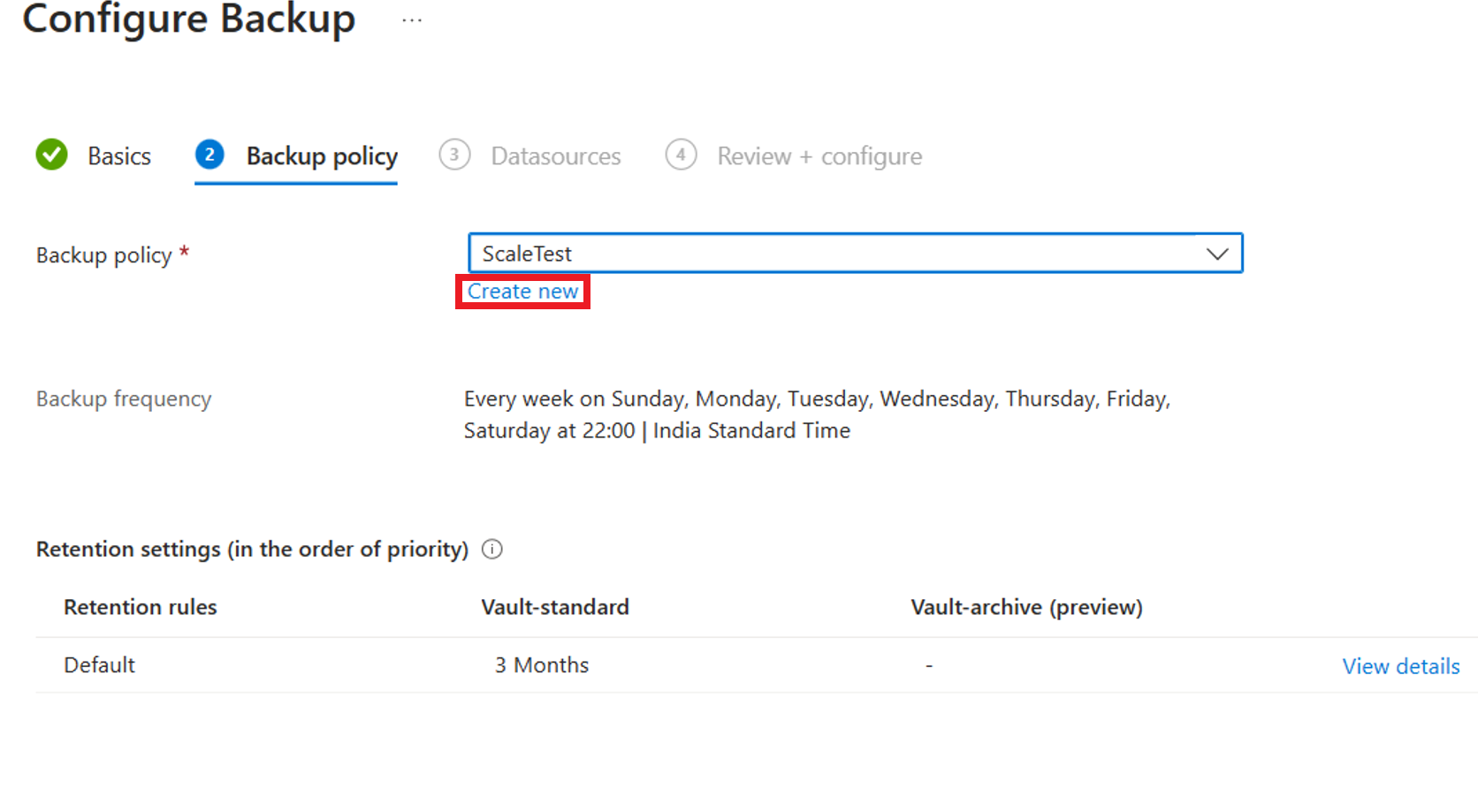 Under Backup policy, select Create new.