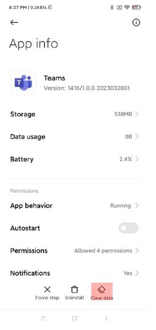 If you've debugged the bot app previously and the app manifest (previously called Teams app manifest) file is changed, we recommend to clear the cache on the mobile device to ensure immediate app synchronization. After clearing the cache, the app takes some time to sync.