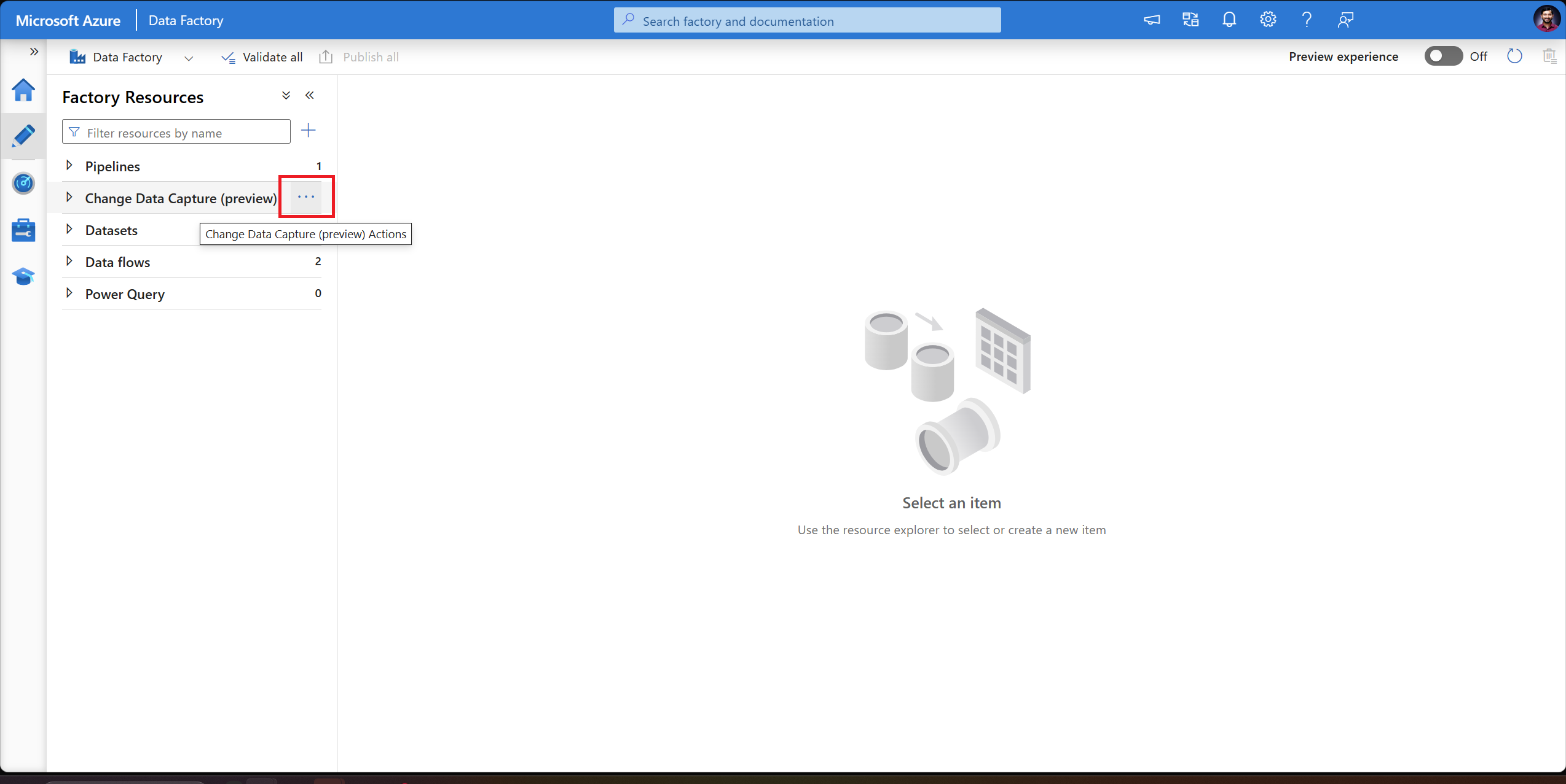 Hover over Change Data Capture (preview) until three dots appear. Then select Change Data Capture (preview) Actions.