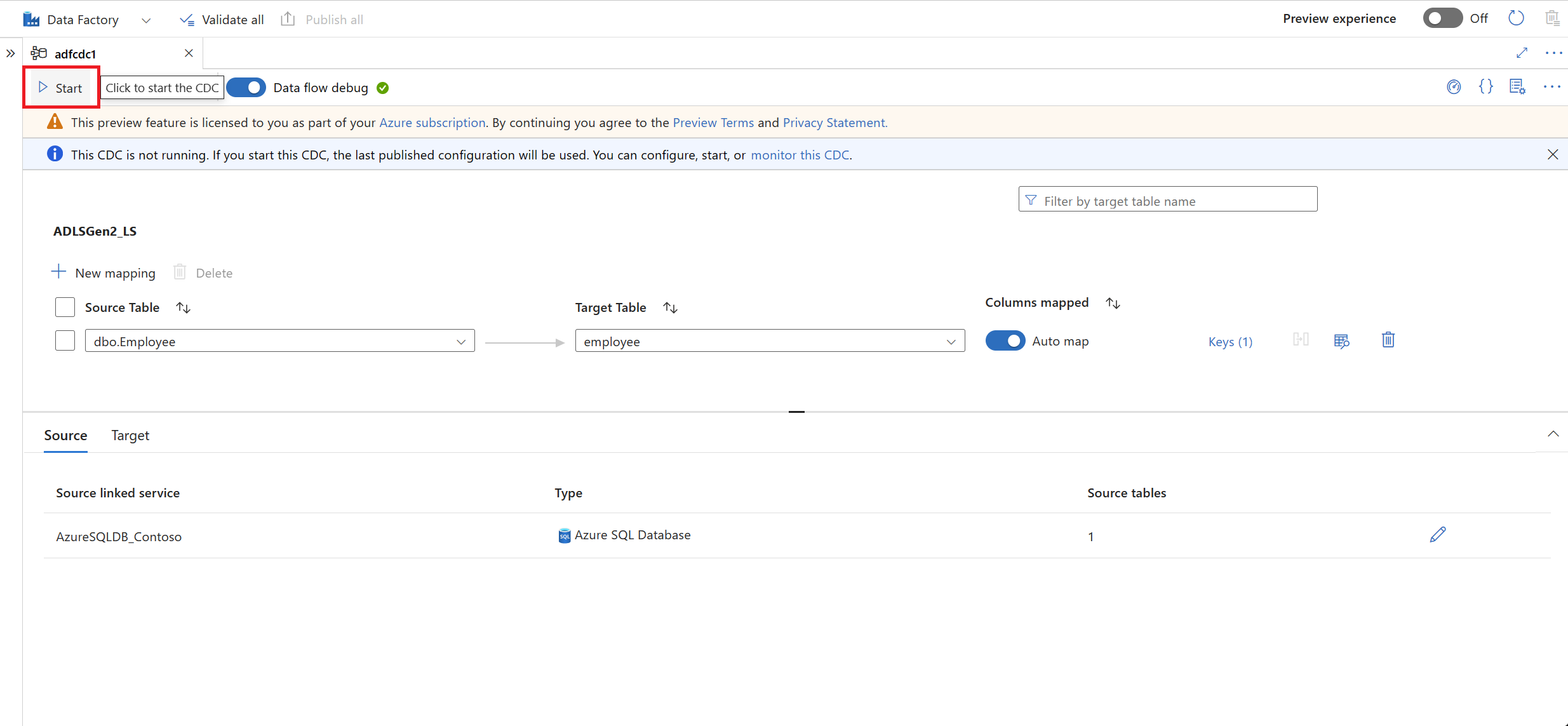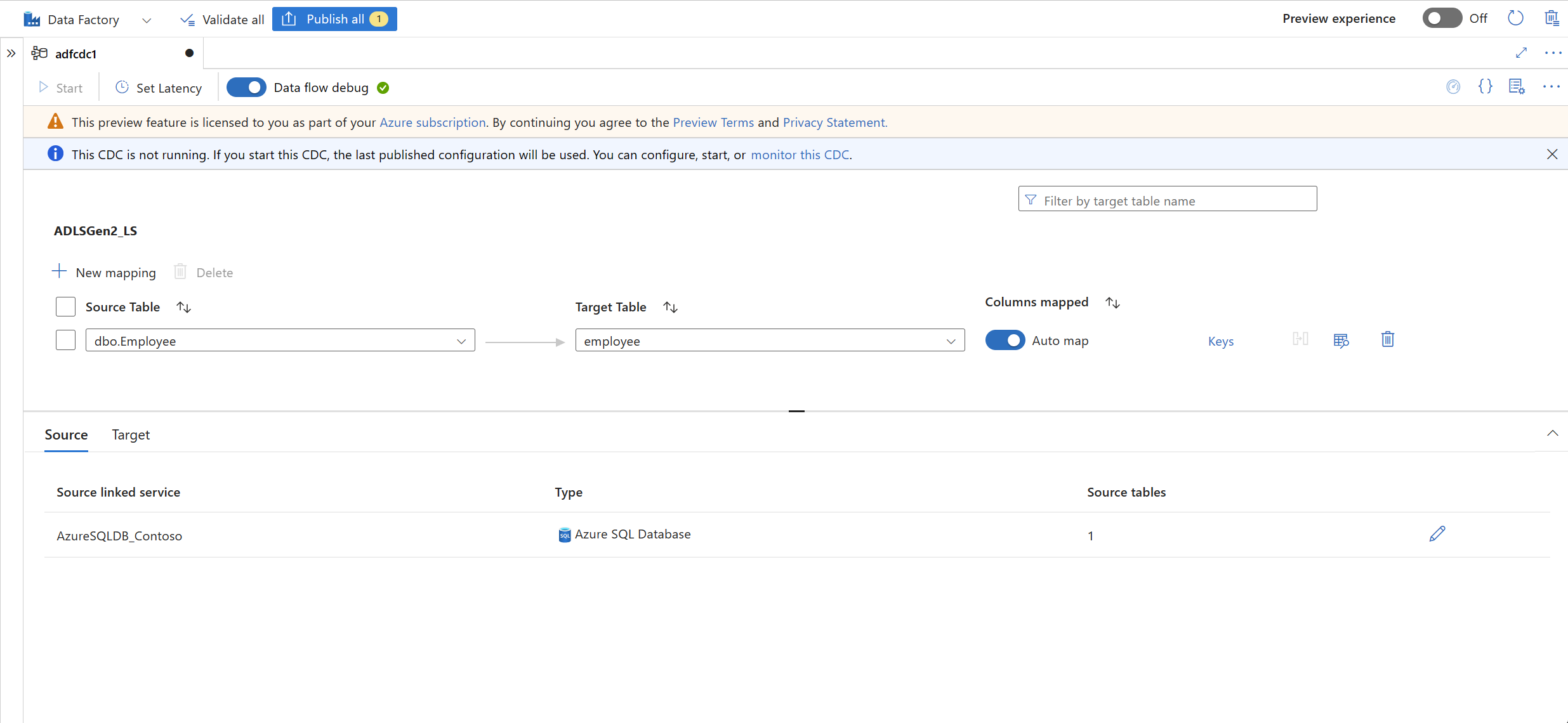 After you finish configuring your CDC, select Publish all to publish your changes.