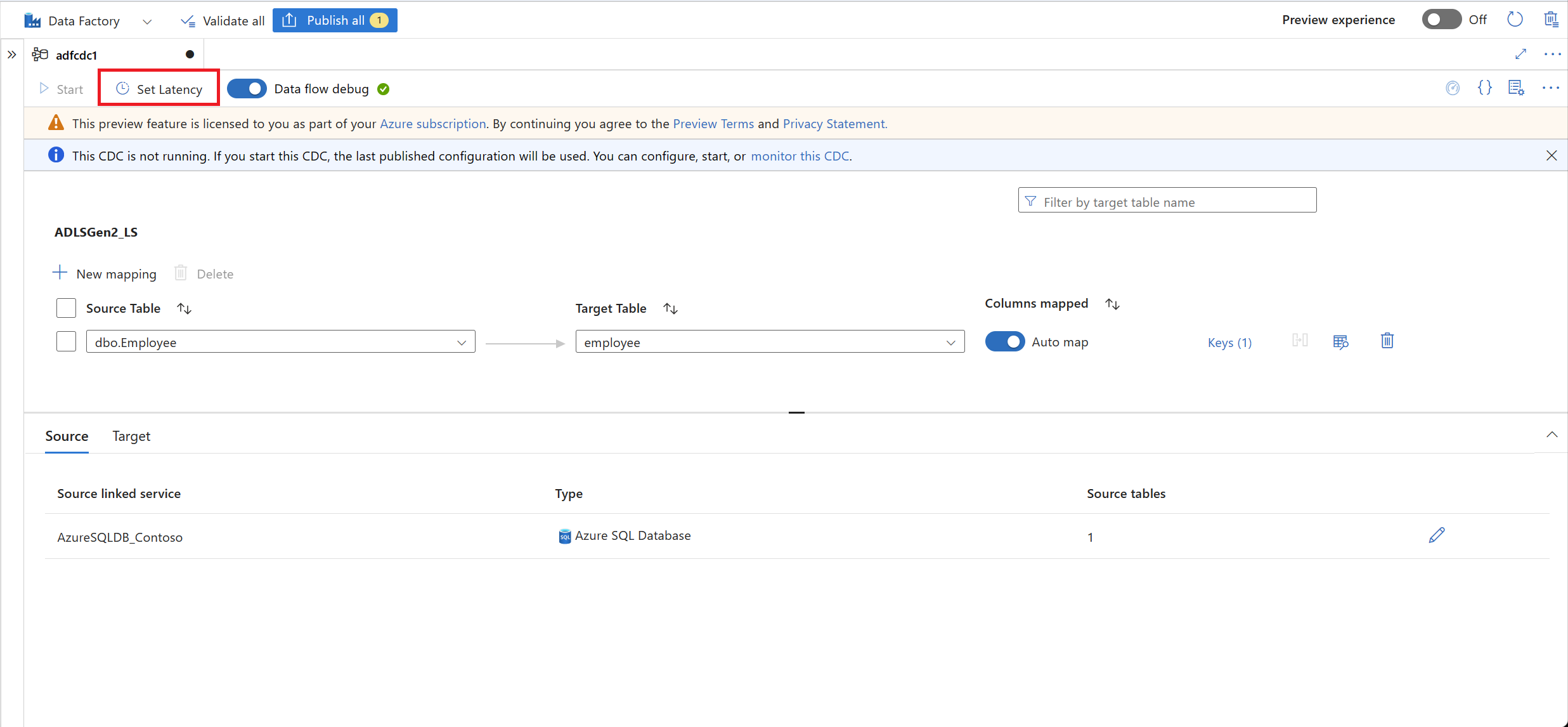 After your mappings are complete, set your CDC latency by using the Set Latency button.