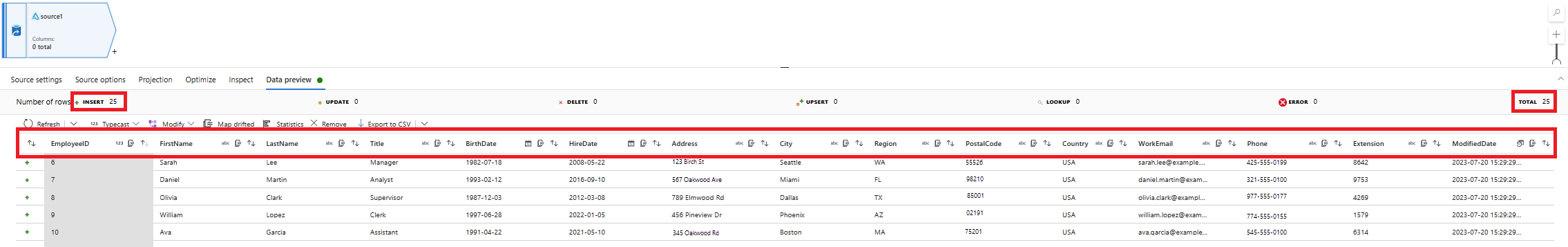 Confirm that the new column PersonalEmail appears in the Delta sink. You now know that change data with schema changes arrived at the target.