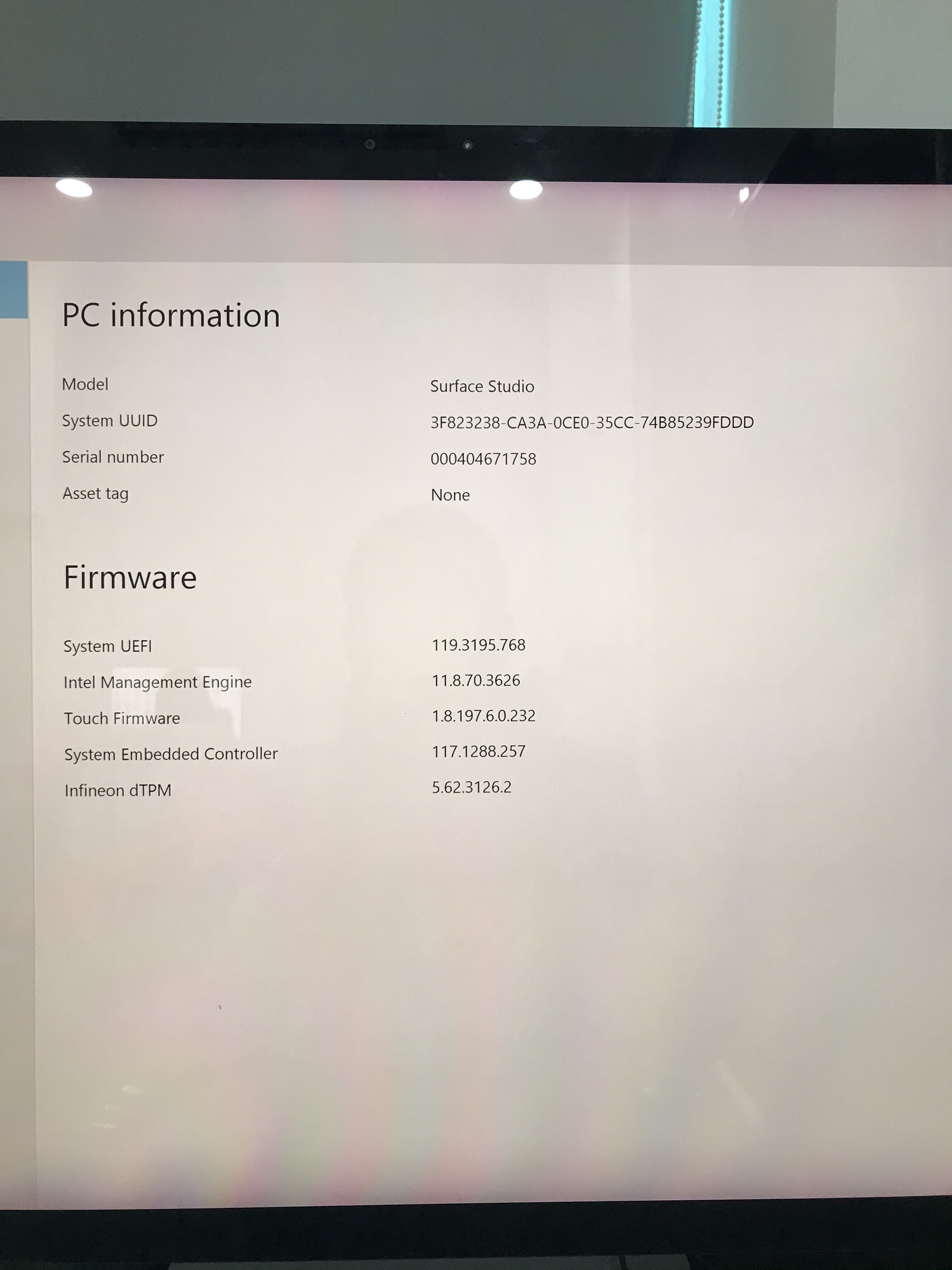 .I suggest logging into your Microsoft live account under your devices you should see your Surface Studio device serial ..