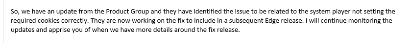 Based on this information, it seems like this is still an unresolved bug in the Edge Android app that affects the playback of videos in SCORM files on Android 13 devices. I apologize for any inconvenience this bug may have caused you.