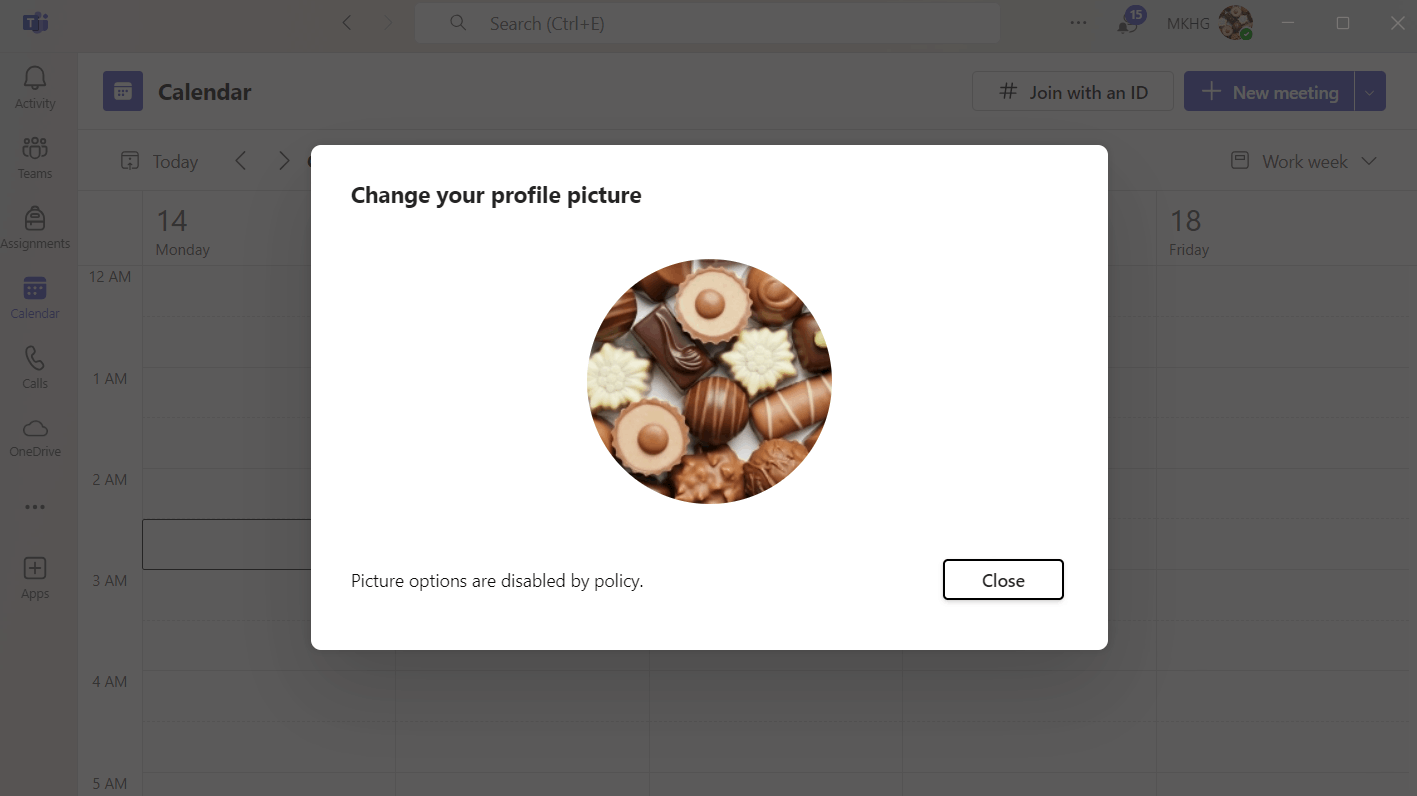 Based on your description, I understand you want to change my picture In Microsoft Teams but gets the error message which says "Picture Options Are Disabled By Policy".