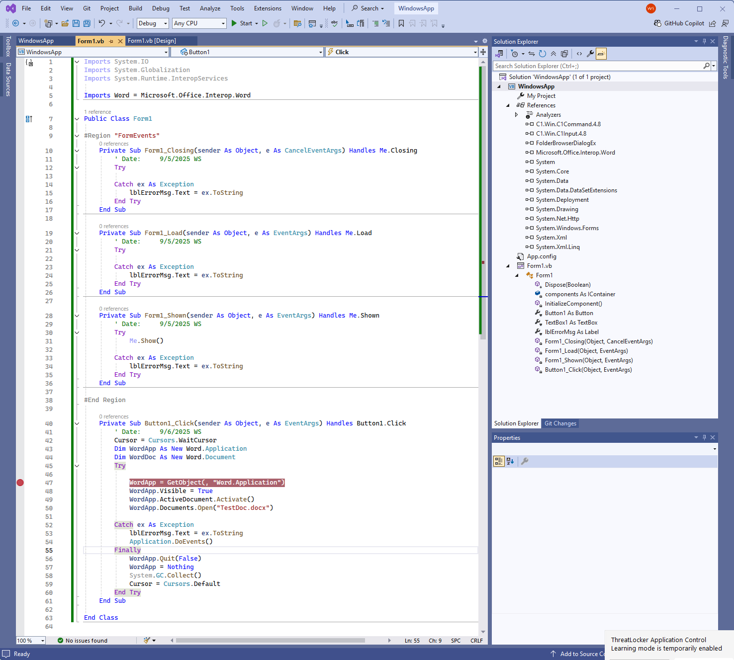 Microsoft.Office.Interop.Word. - In Properties → set Embed Interop Types = False.