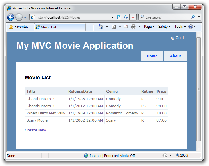 Our final Create.aspx template will look like this, and let's change our browser's title and secondary <h2> title to something like "Create a Movie" while we're in here!