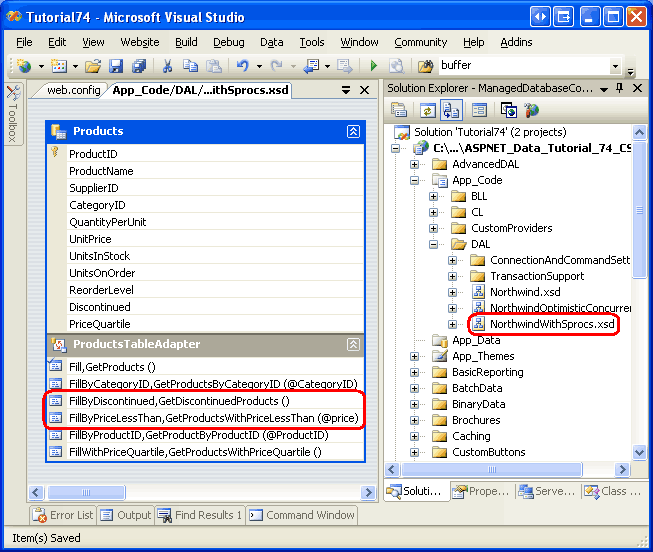 Let s start by adding a stored procedure that simply returns all of the products that have been discontinued. Name the new stored procedure file GetDiscontinuedProducts.vb.