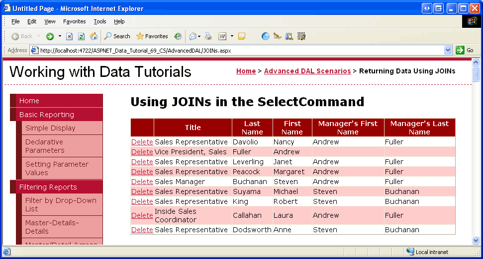 Figure 14: The JOIN in the Employees_Select Stored Procedure Returns the Manager s Name (Click to view full-size image)