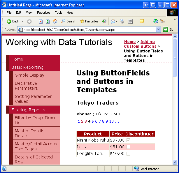 In this tutorial we'll look at how to add custom buttons, both to a template and to the fields of a GridView or DetailsView control. In particular, we'll build an interface that has a FormView that allows the user to page through the suppliers.