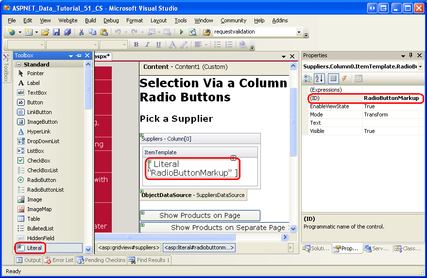 This tutorial looks at how to add a column of radio buttons to the GridView. The proceeding tutorial explores using checkboxes.