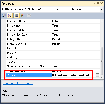 Using the EntityDataSource "Where" Property to Filter Data