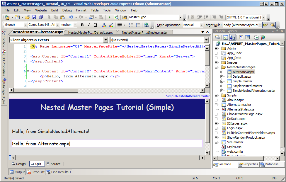 Figure 07: Alternate.aspx is Bound to the SimpleNestedAlternate.master Master Page (Click to view full-size image)