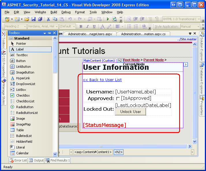 Figure 2: Create the User Interface for UserInformation.aspx (Click to view full-size image)