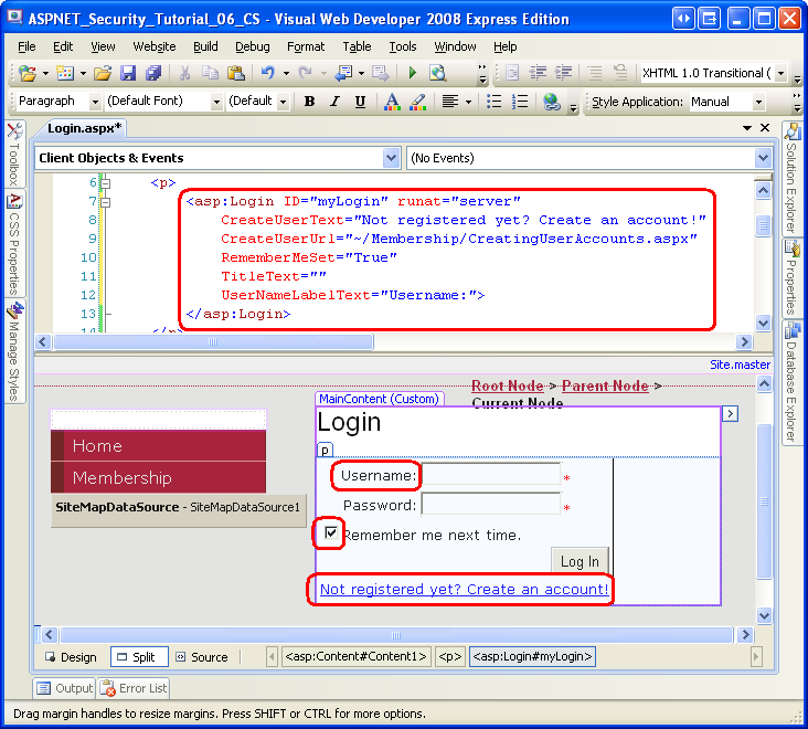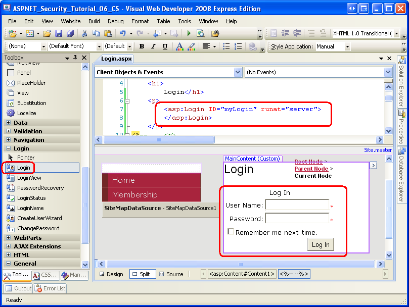 Figure 3: Add a Login Control to the Page (Click to view full-size image)