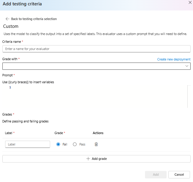 Screenshot of the custom prompt testing criteria.
