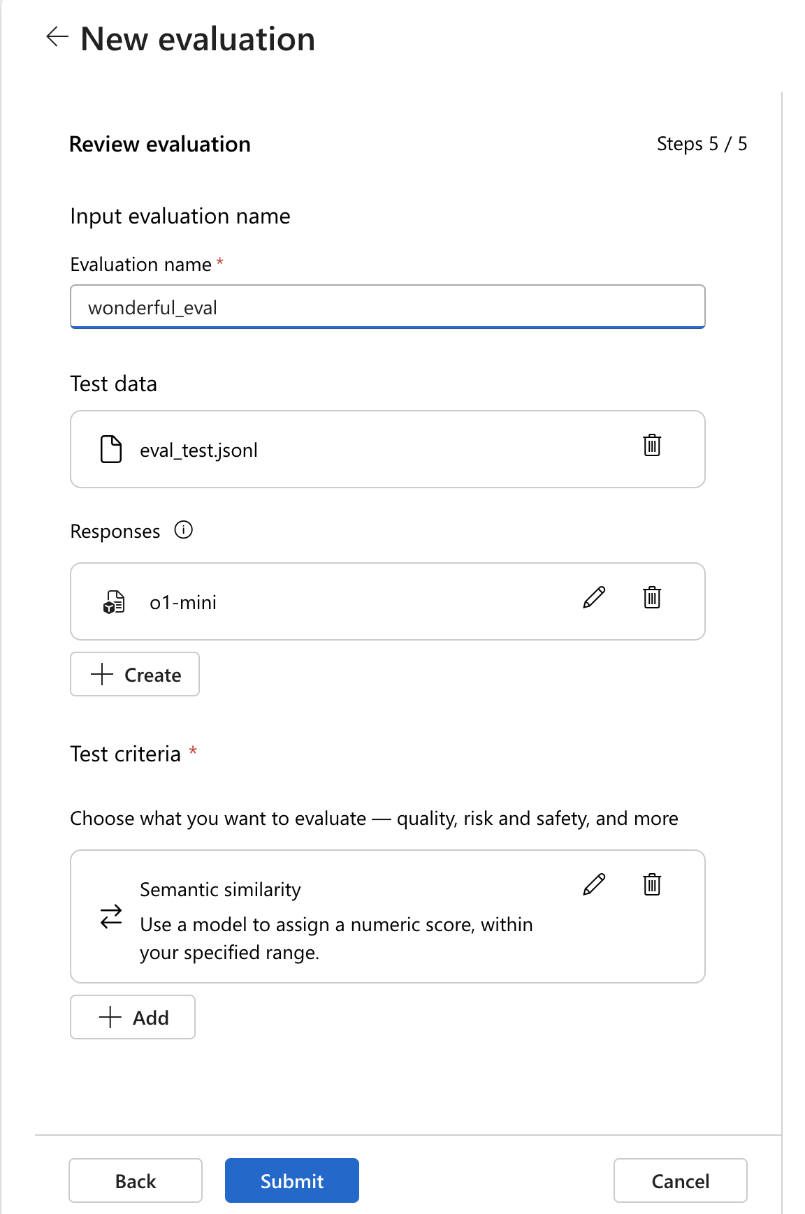 Screenshot of the Azure OpenAI create new evaluation.