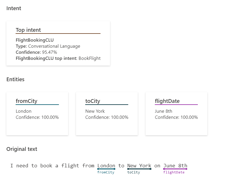 Conversational language understanding (CLU) enables users to build custom natural language understanding models to predict the overall intention of an incoming utterance and extract important information from it.