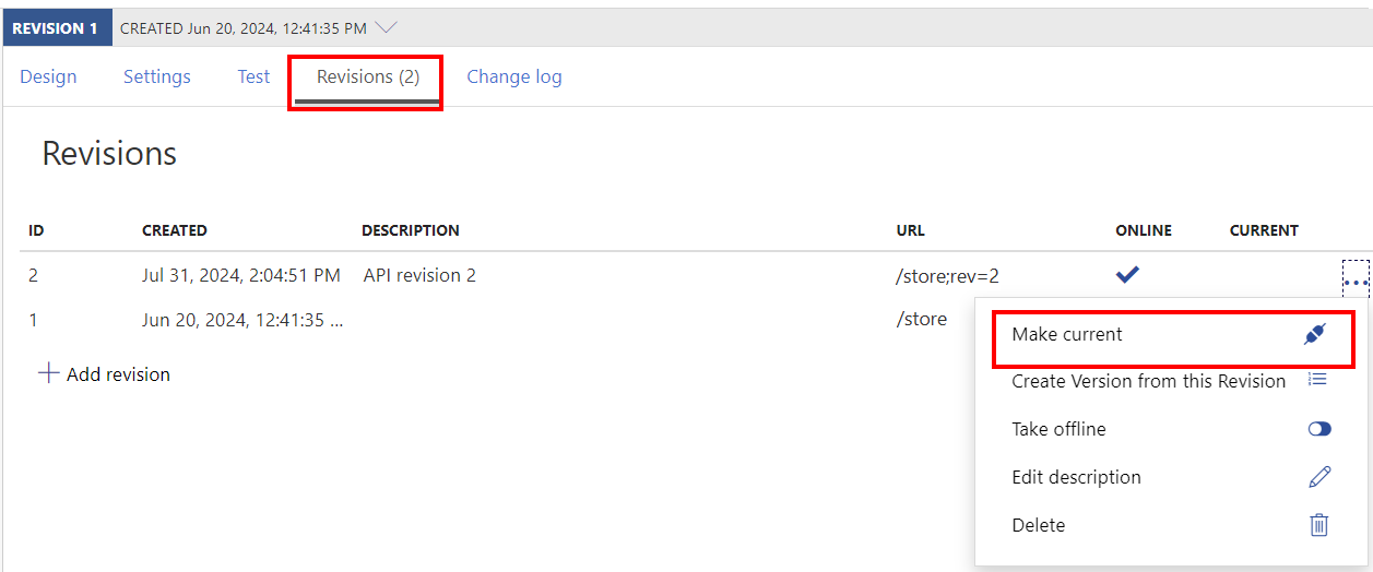 In Azure API Management, use revisions to make nonbreaking API changes so you can model and test changes safely. When ready, you can make a revision current and replace your current API.