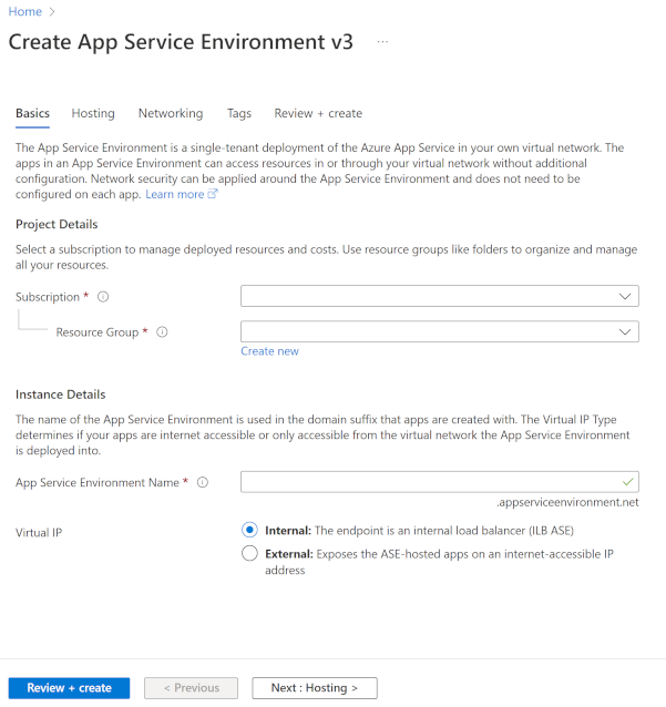 - Enter the name of your App Service Environment.