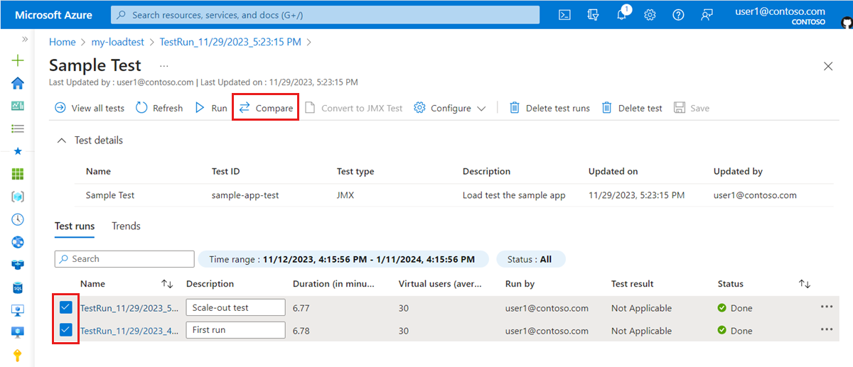 Compare load test runs in Azure Load Testing