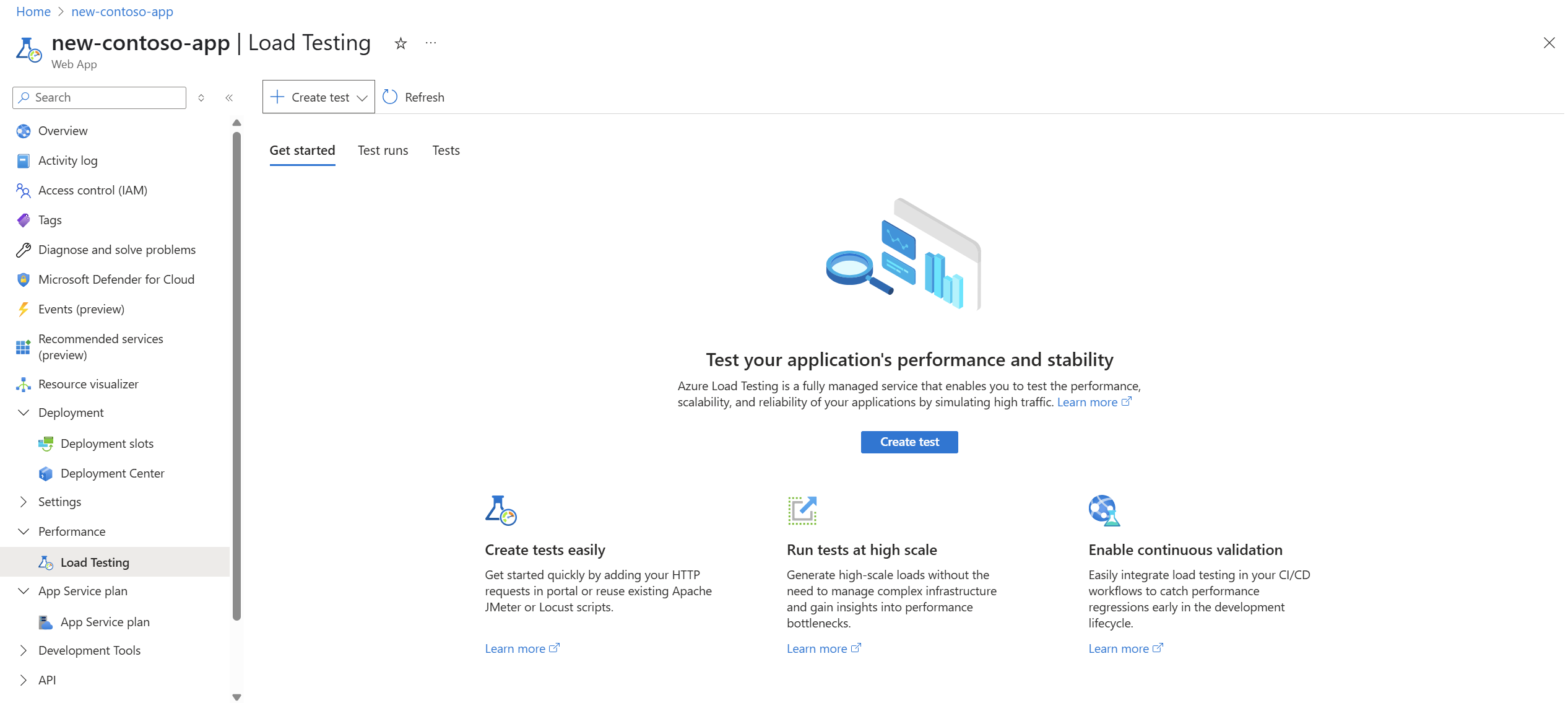 - Learn more about load testing Azure App Service applications.