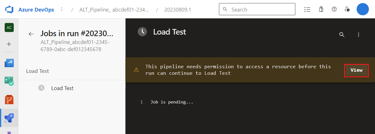 When you run the CI/CD pipeline for the first time, you need to grant permission to the pipeline to access the service connection and start the load test.