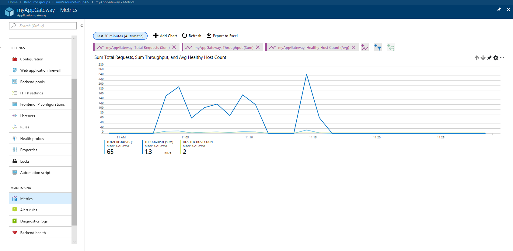 For Application Gateway, there are several metrics available. For a list, see Application Gateway metrics.