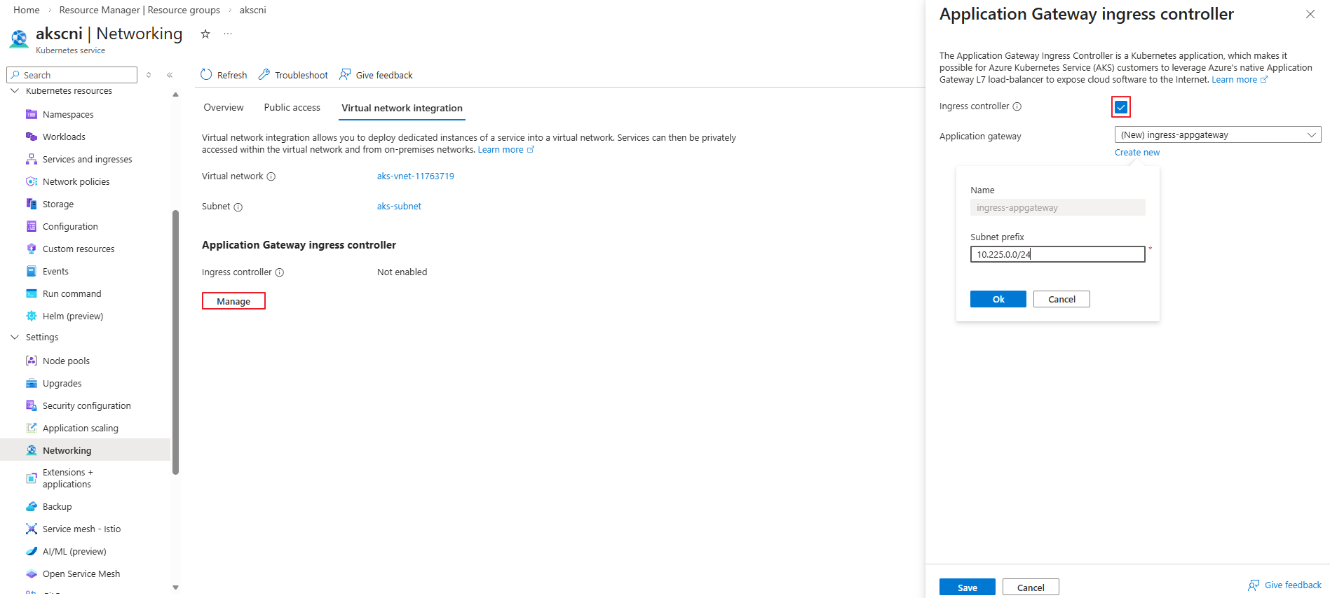 You already have an existing AKS cluster and will enable the AGIC add-on. The add-on can be enabled either through the Azure portal or by using the Azure CLI.