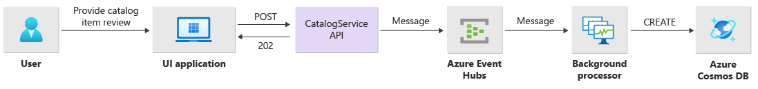 This article focuses on the reliability and resiliency aspects of a mission-critical application, such as asynchronous request processing and how to achieve high throughput within a solution. This article series uses a simple online catalog scenario as an example of a highly reliable workload where users can browse through a catalog of items, review item details, and post ratings and comments for items.