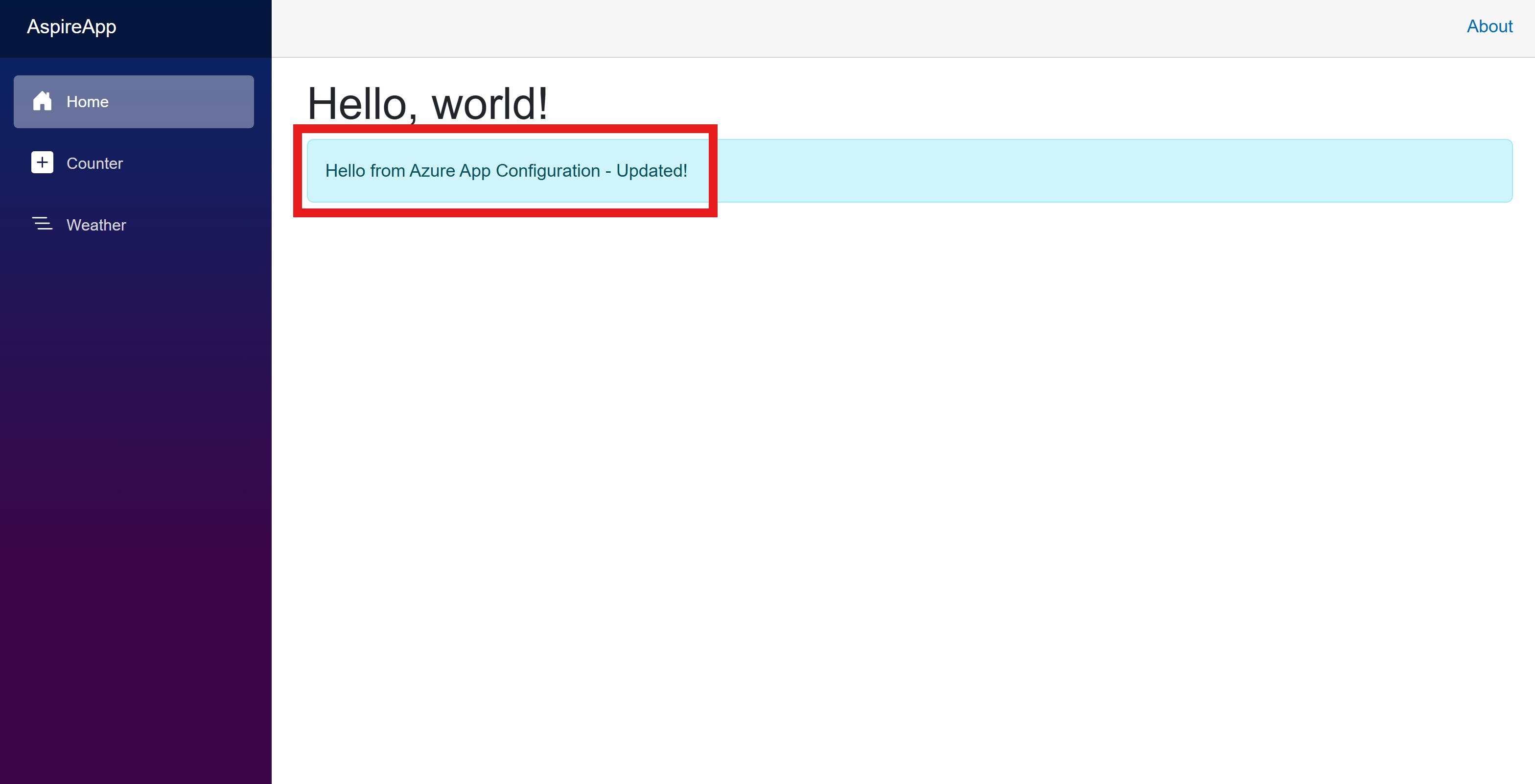TestApp:Settings:Message Hello from Azure App Configuration - Updated!