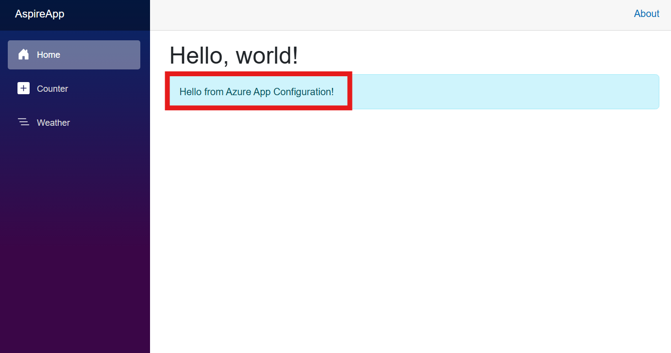 .WithReference(appConfiguration) // reference the App Configuration resource