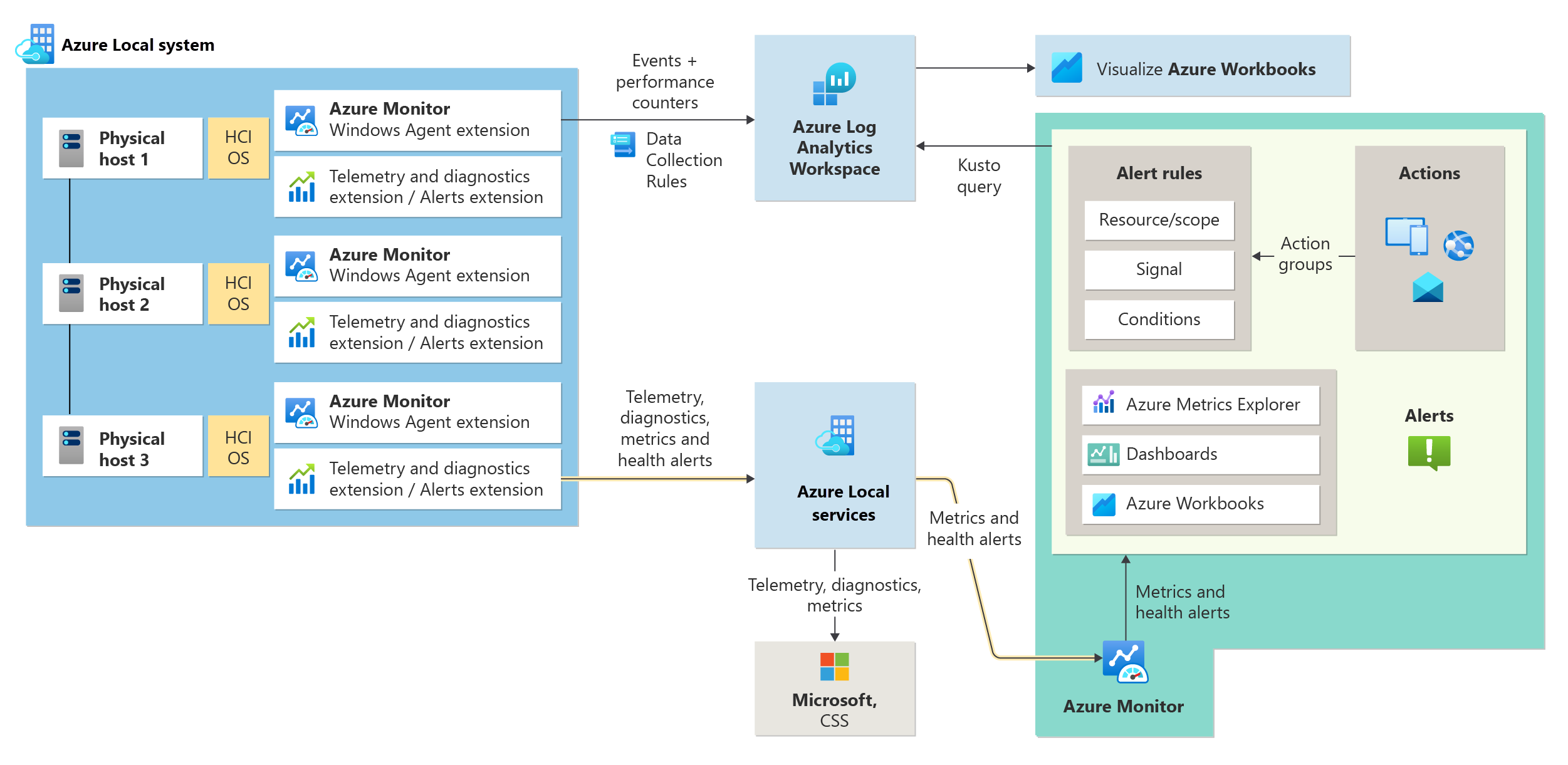 Broadly, the architecture of Azure Local monitoring comprises the following key components: