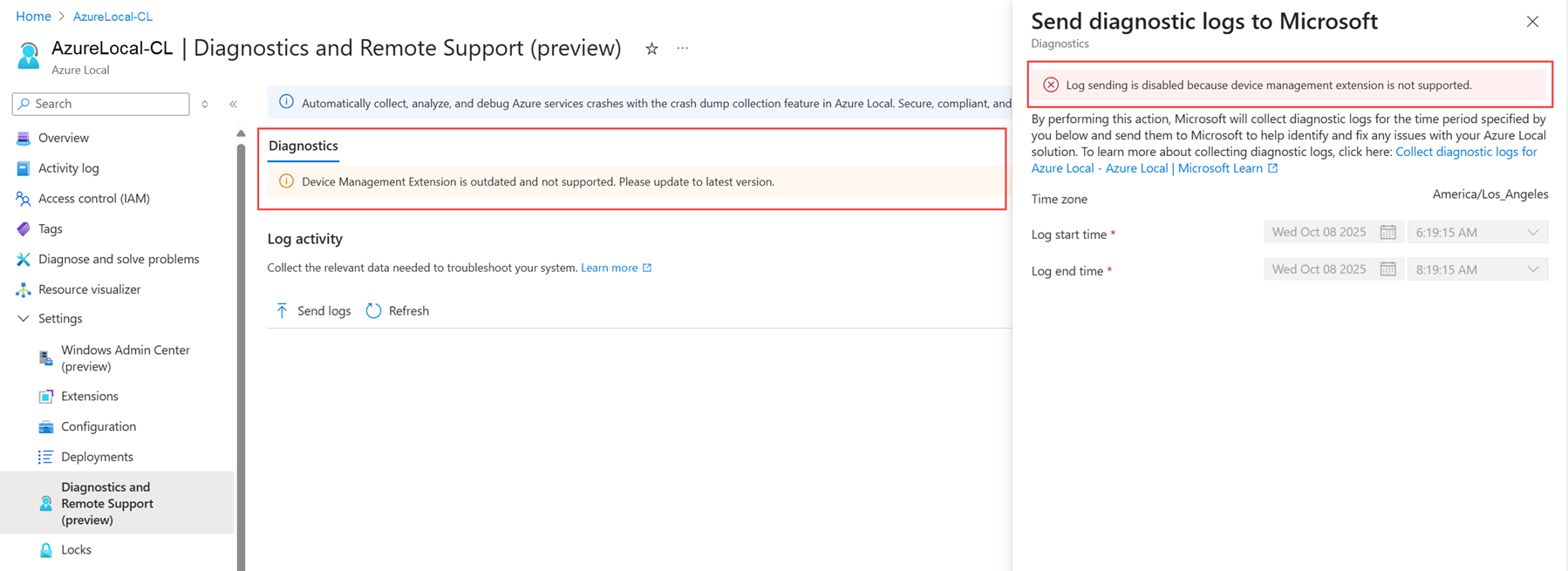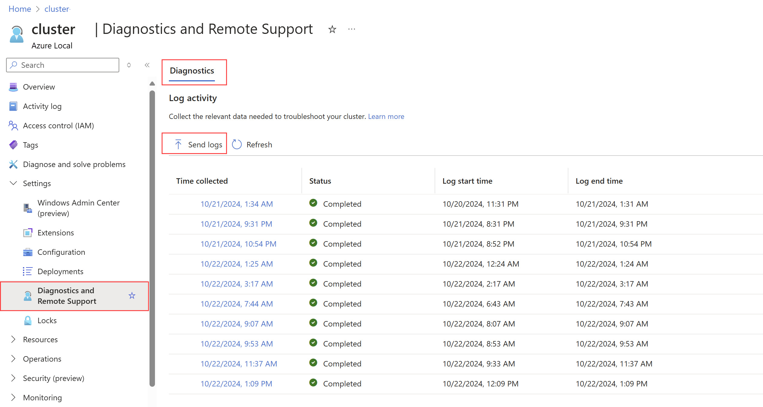 Send-DiagnosticData cmdlet varies depending on factors, such as the roles for which logs are being collected, the time duration specified, and the number of nodes in your Azure Local environment.