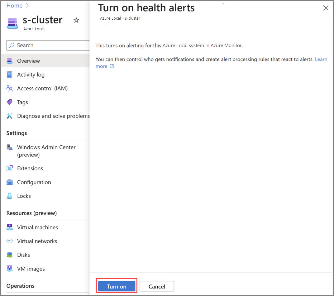 • No additional cost. By enabling the health alerts capability, you automatically get Azure Monitor alerts for all your Azure Local system health issues at no additional cost. There's no need to set up Log Analytics or manually author any alert rules.