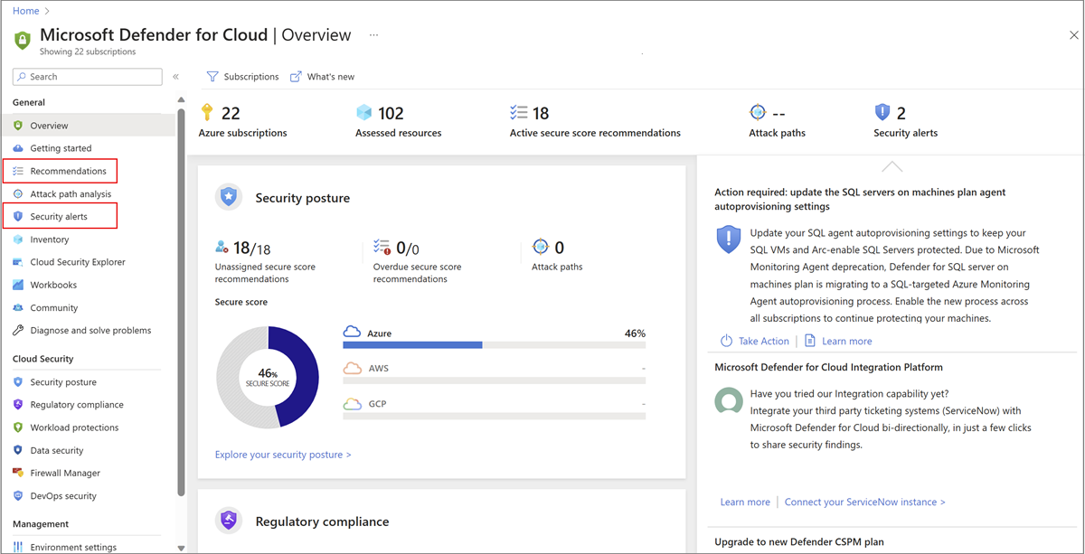 Sign into the Azure portal, and search for and select Microsoft Defender for Cloud.