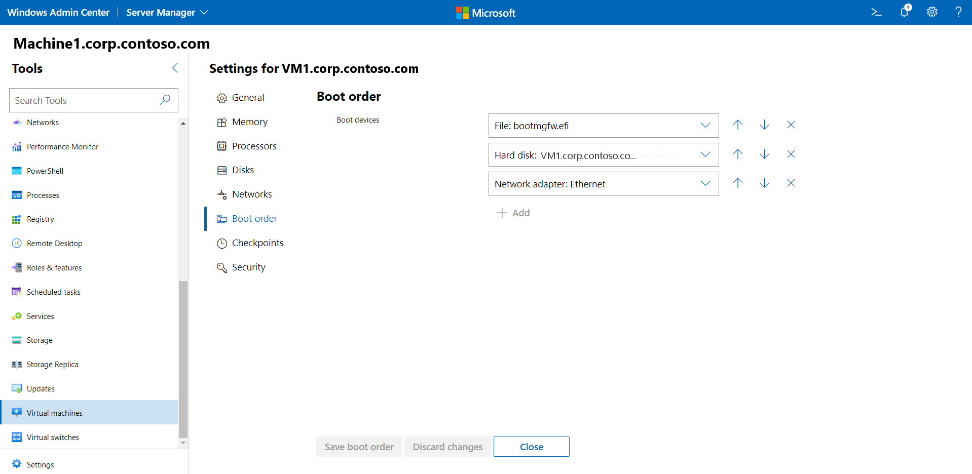 1. In Windows Admin Center, under Tools, scroll down and select Virtual Machines.