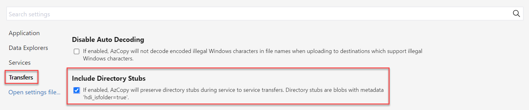 In Storage Explorer, you can enable this flag in Settings by selecting Transfers and checking the box for Include Directory Stubs.