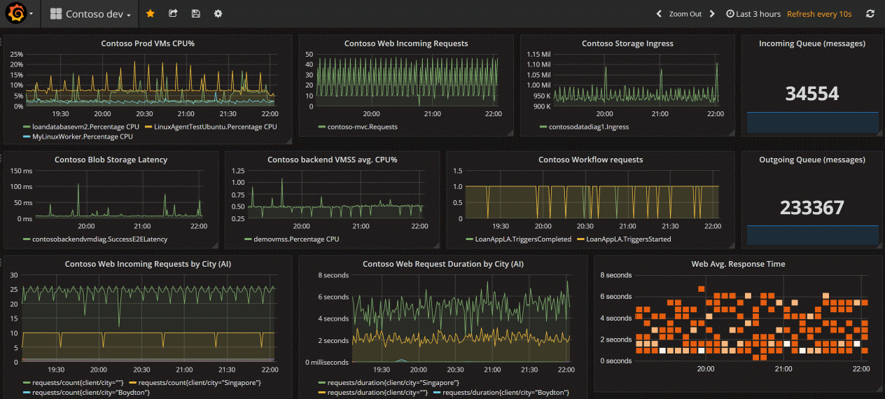 Grafana is ideal for data visualizations and dashboards in cloud-native scenario such as Kubernetes as well as multicloud, open source software, and third-party integrations. It provides interoperability with open-source and third-party tools and allows you to share dashboards outside of the Azure portal.