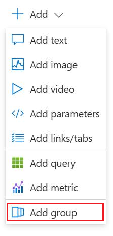 • Select the ellipses (...) to the right of the Edit button next to one of the elements in the workbook, then select Add and then Add group.