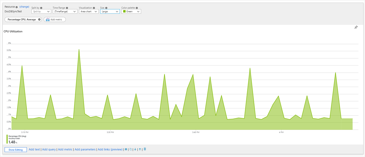 Screenshot that shows workbook metrics charts of CPU utilization.